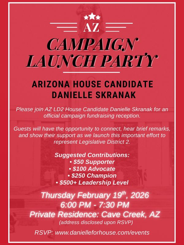 Join Danielle Skranak for an exclusive LD2 Campaign Launch Reception. Your support fuels this campaign—meet Danielle, invest in the mission, and help set the tone for victory.